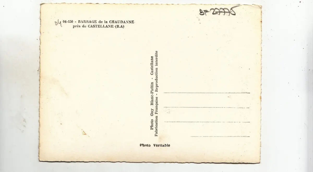 BF27775 barrage de la chaudanne pres de castellane france front/back image