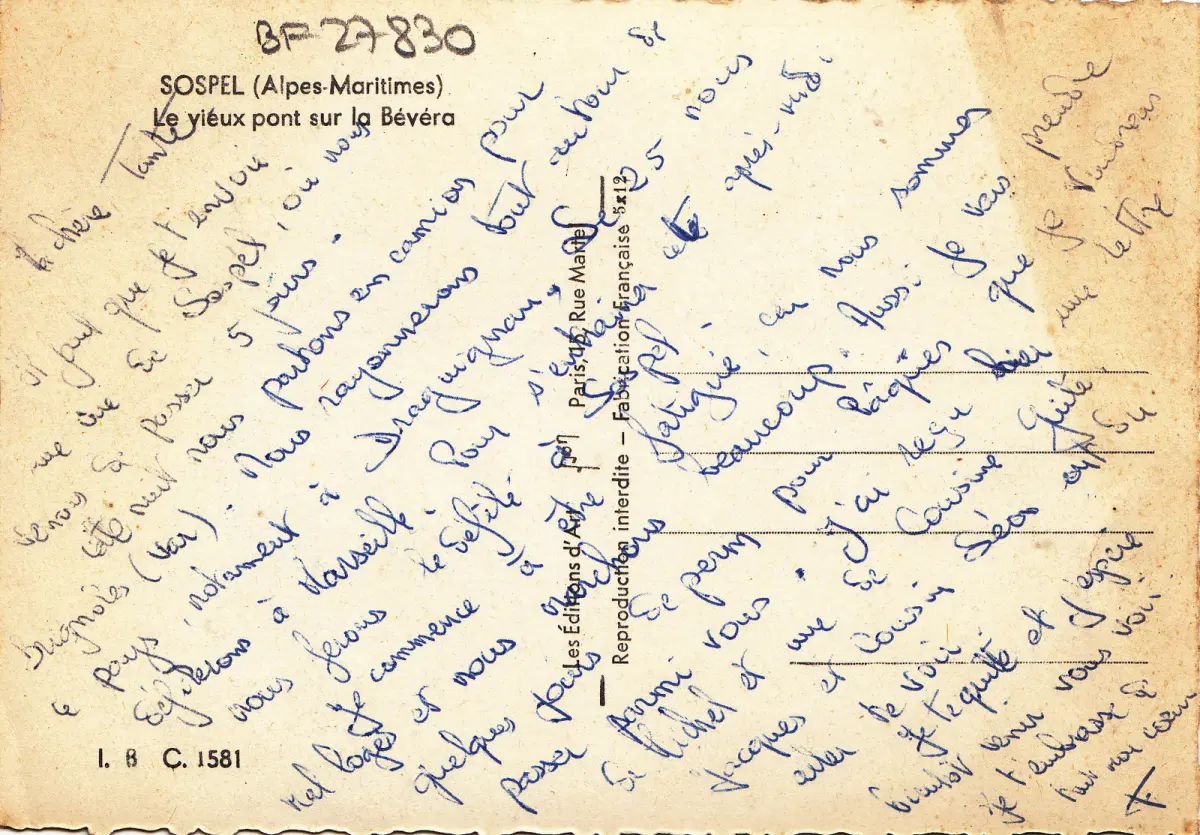 BF27830 sospel a m le vieux pont sur la bevera france front/back image