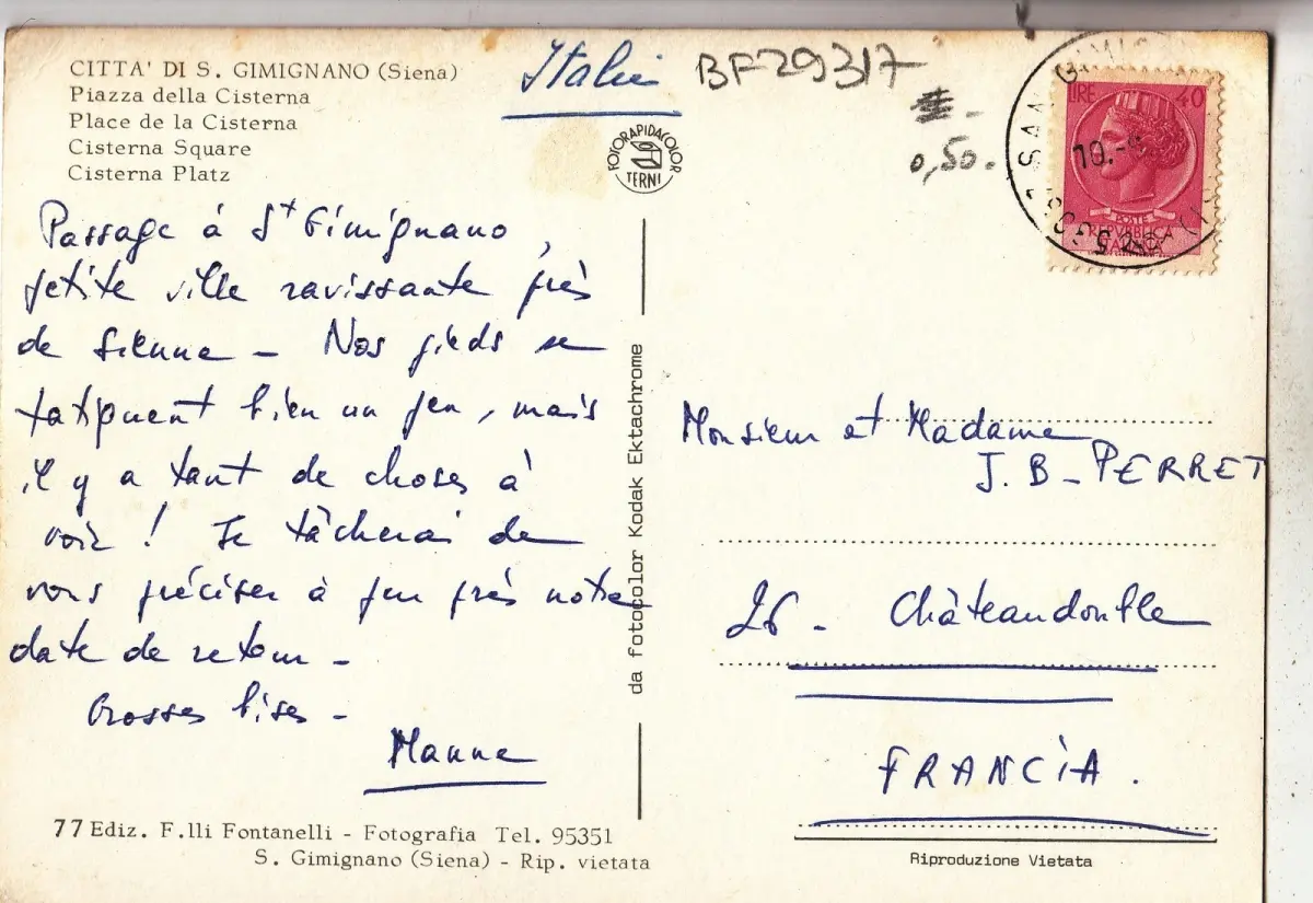 BF29317 citta di s gimignano siena piazza della cisterna italy front/back image