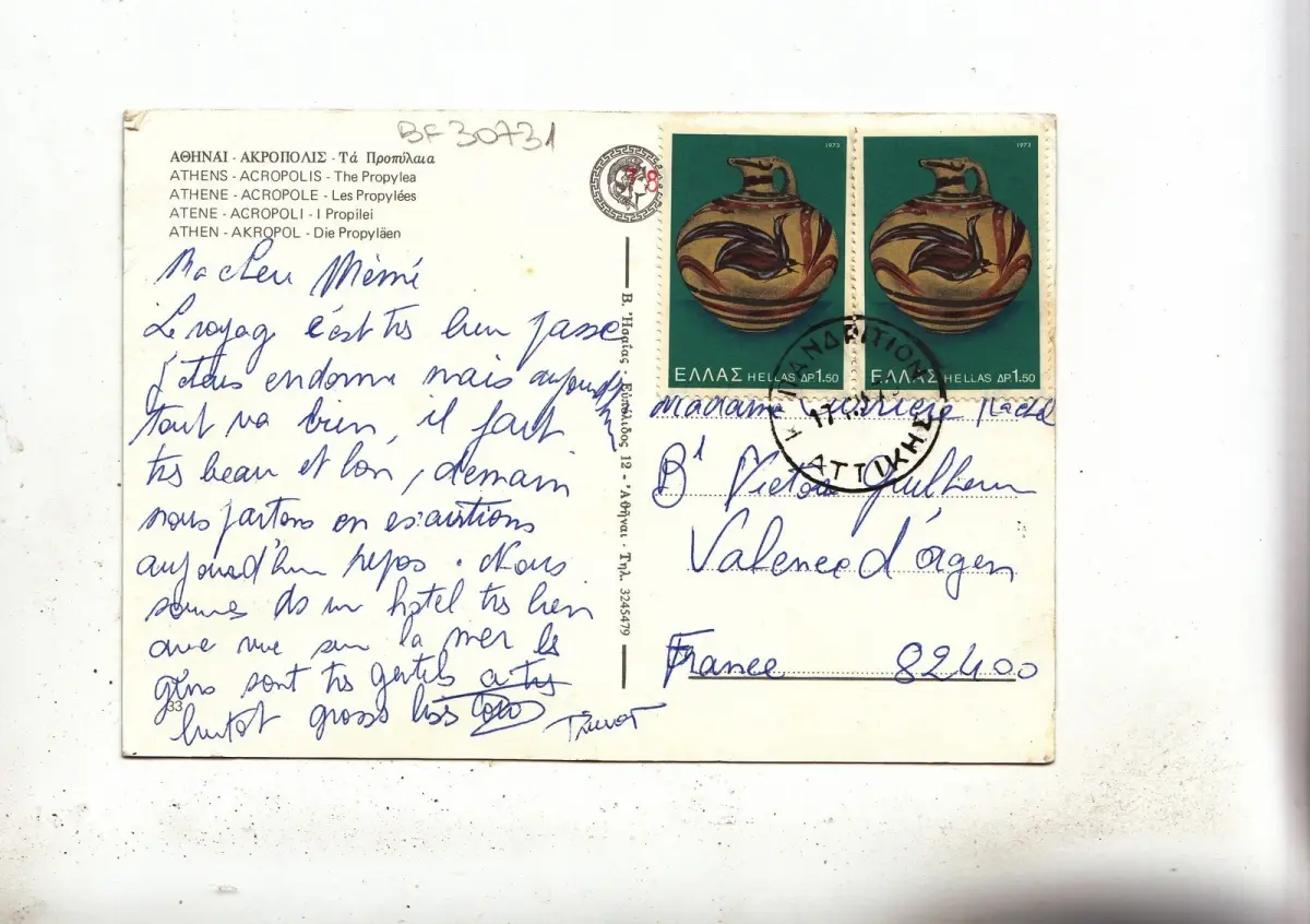 BF32023 corinthe colonnes du temple de apollon vers aer greece front/back image