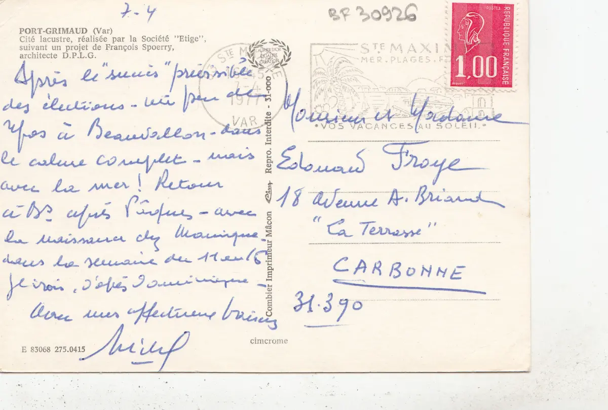 BF30926 port grimaud var cite lacuster france front/back image