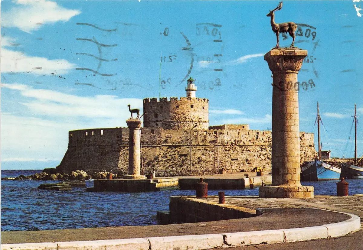 Rhodos Rhodes aegaeis Leuchtturm Hirsch Mandraki Kat.