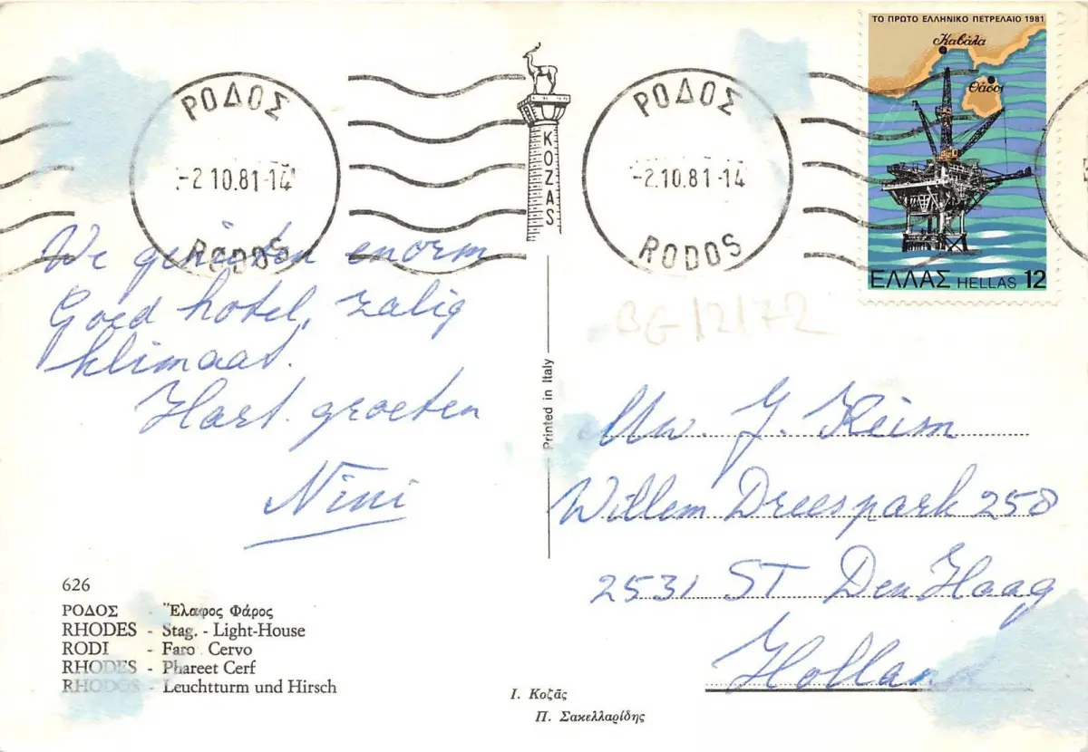 Rhodos Rhodes aegaeis Leuchtturm Hirsch Kat.