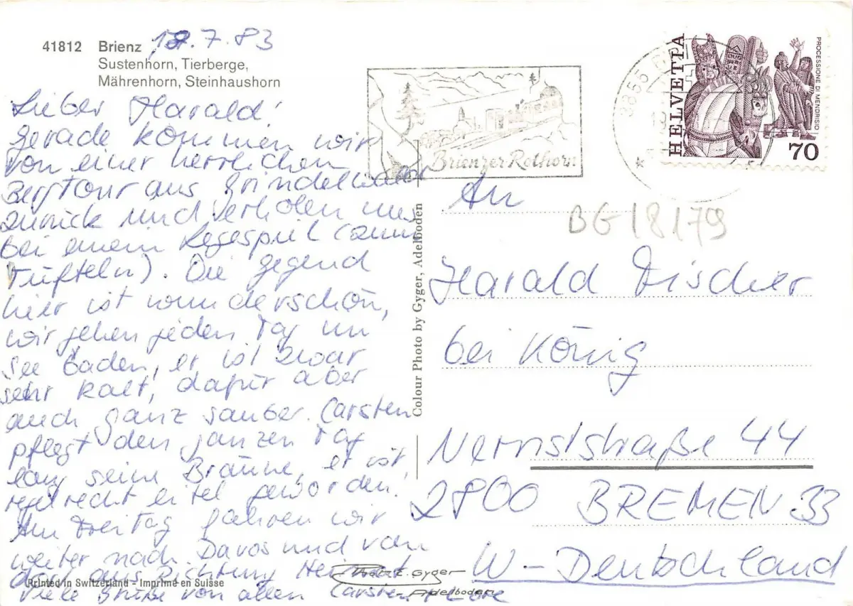 Brienz Rothornbahn Kulmhotel Gipfel Sustenhorn Kat. Eisenbahn