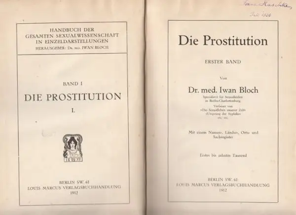 Bln., Marcus. 1912. 2 Bde. XXXVI, 870 (2); VII, 728 S. OHLn. - (Handbuch d. gesamten Sexualwissenschaft in Einzeldarstellungen 1,2). EA.