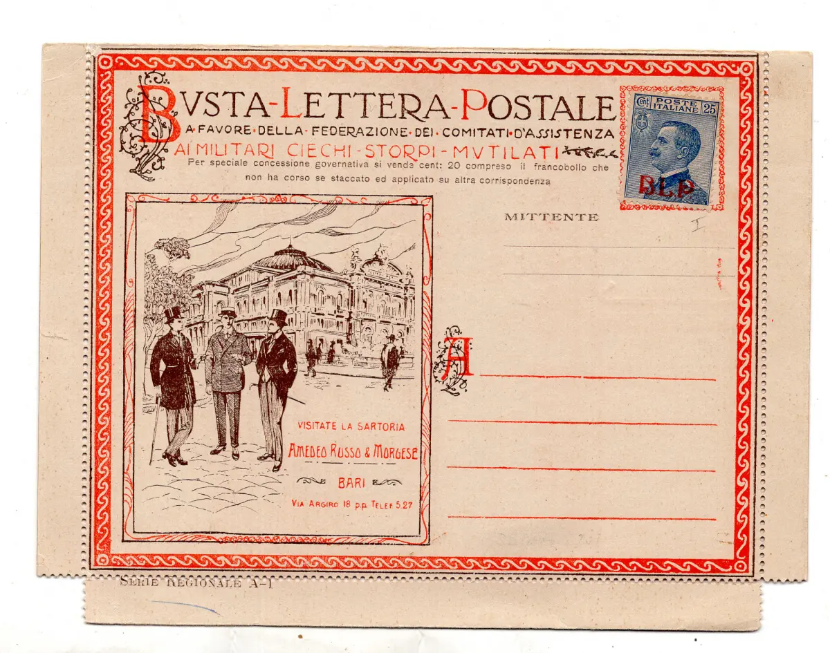 Regionale A1 Sartoria Russo e Morgese - B.L.P frankiert mit Cent. 25 Nr. 3 nicht gereist, mit Innenfolie - Qualität: mittelmäßig, mit unvollständigen Verschlusskanten Cod.189/182