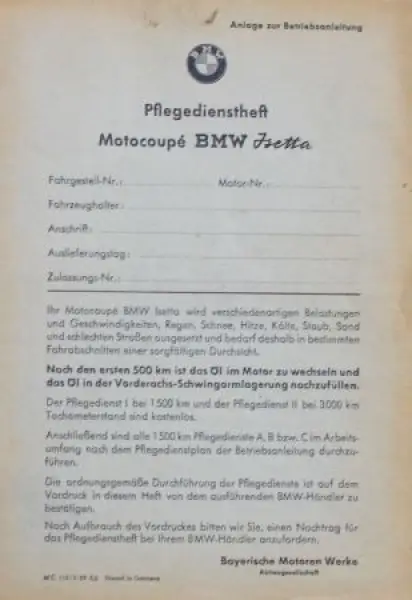 BMW Isetta Motorcoupe 1959 Pflegedienstheft (6186)