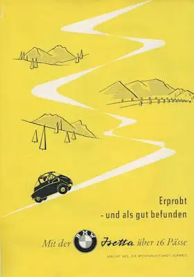 BMW Mit Isetta über 16 Alpen Pässe Prospekt ca. 1955