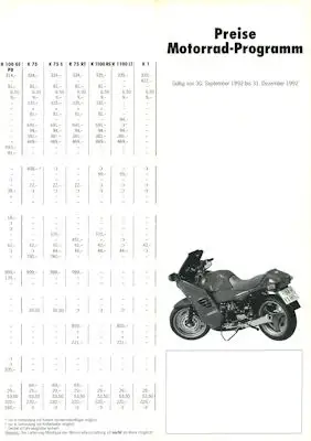 BMW Preisliste 30.9.1992 - 31.12.1992
