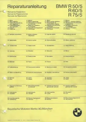 BMW R 50/5 60/5 75/5 Reparaturanleitung 8.1972