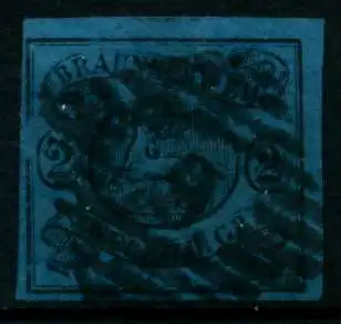 2 Sgr, Freimarke, Wappen von Braunschweig im waagerechten Oval, Wasserzeichen Posthorn, schwarz auf blau