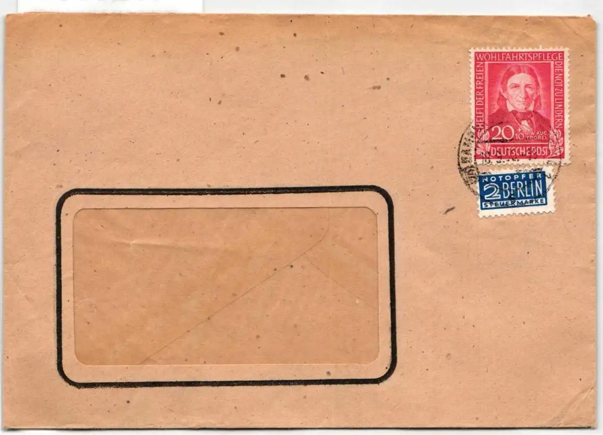 20 Pfennig Fröbel Einzelfrankatur von Hamburg am 18.9.1950 auf Fensterumschlag gelaufen.