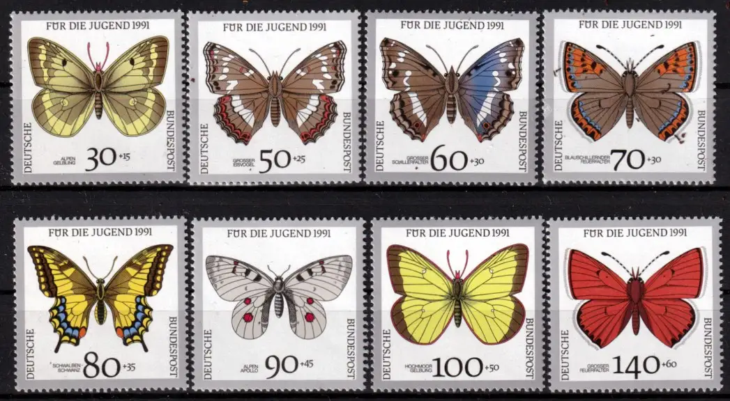 BRD 1512--19 kpl. Satz Jugend, Schmetterlinge 1991, postfrisch **