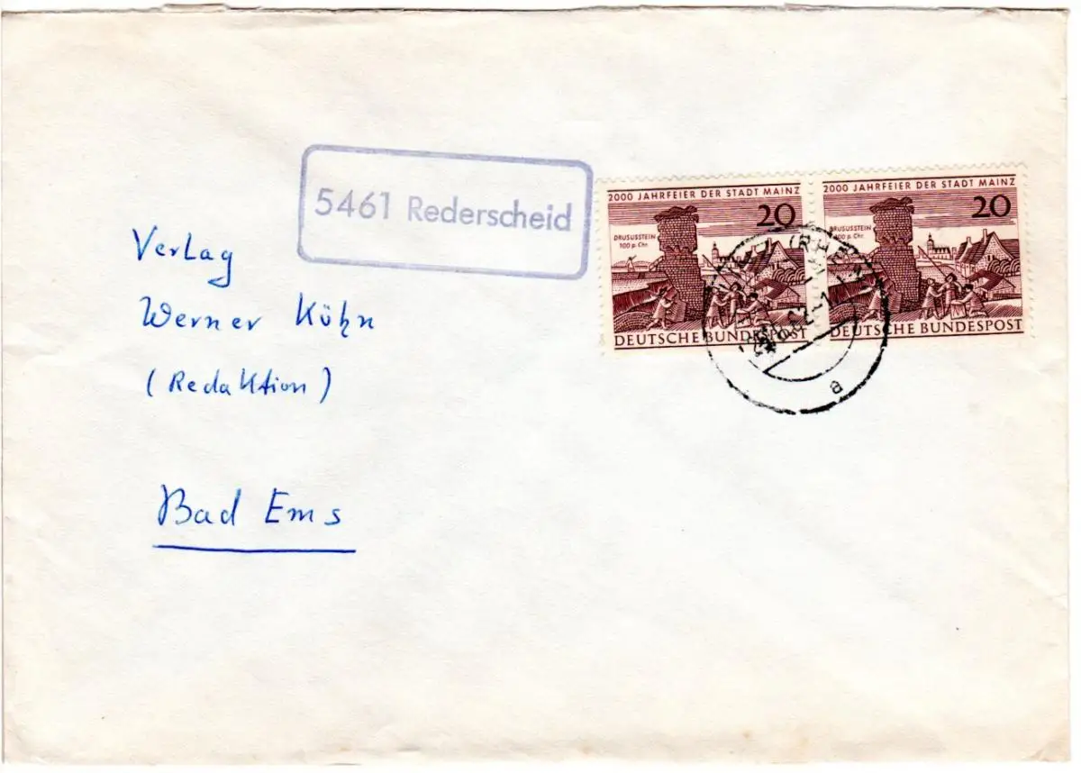 BRD 1962, Landpost Stpl. 5461 REDERSCHEID auf Brief m. MeF 2x20 Pf. Mainz.
