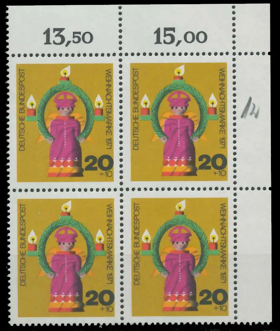 BRD 1971 Nr 709 postfrisch VIERERBLOCK ECKE-ORE 7F9DEA