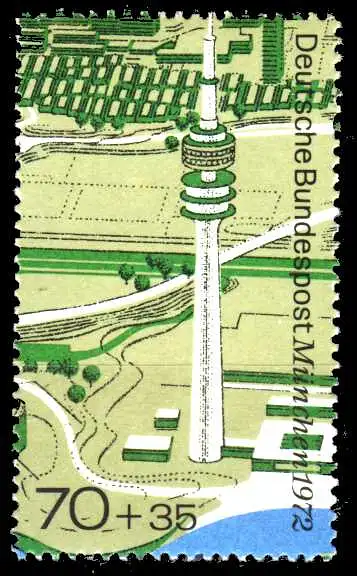70 + 35 Pfg Wert aus der Blockausgabe Olympische Sommerspiele in München (Olympiastadion und Umgebung)
