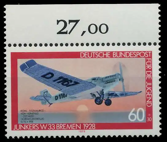 60 + 30 Pfg Wert aus der Ausgabe Jugend 1979 - Luftfahrt - Kleinflugzeuge - Sportflugzeuge - Flugzeuge - Hubschrauber
