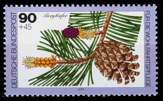 90 + 45 Pfg Wert aus der Ausgabe Jugend 1979 - Blätter, Blüten und Früchte des Waldes - Kiefer