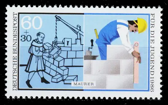 60 + 30 Pfg Wert aus der Ausgabe Jugend 1986 - Handwerksberufe - Maurer