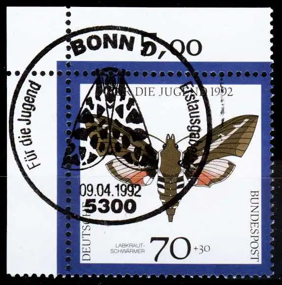70 + 30 Pfg Wert aus der Ausgabe Jugend 1992 - Nachtfalter / Schmetterlinge, ESST
