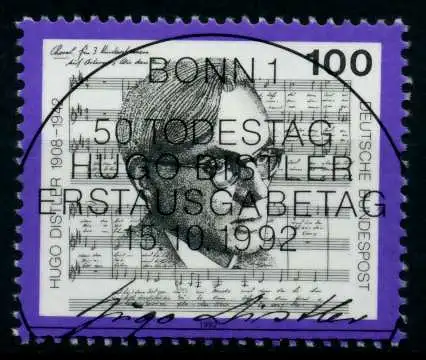 50. Todestag von Hugo Distler, Ersttagssonderstempel