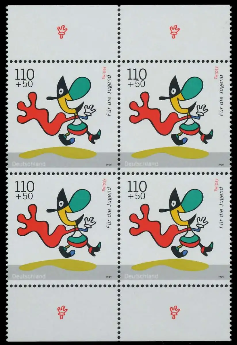 110 + 50 Pfg Wert aus der Ausgabe Jugend 1999 - Trickfilmfiguren
