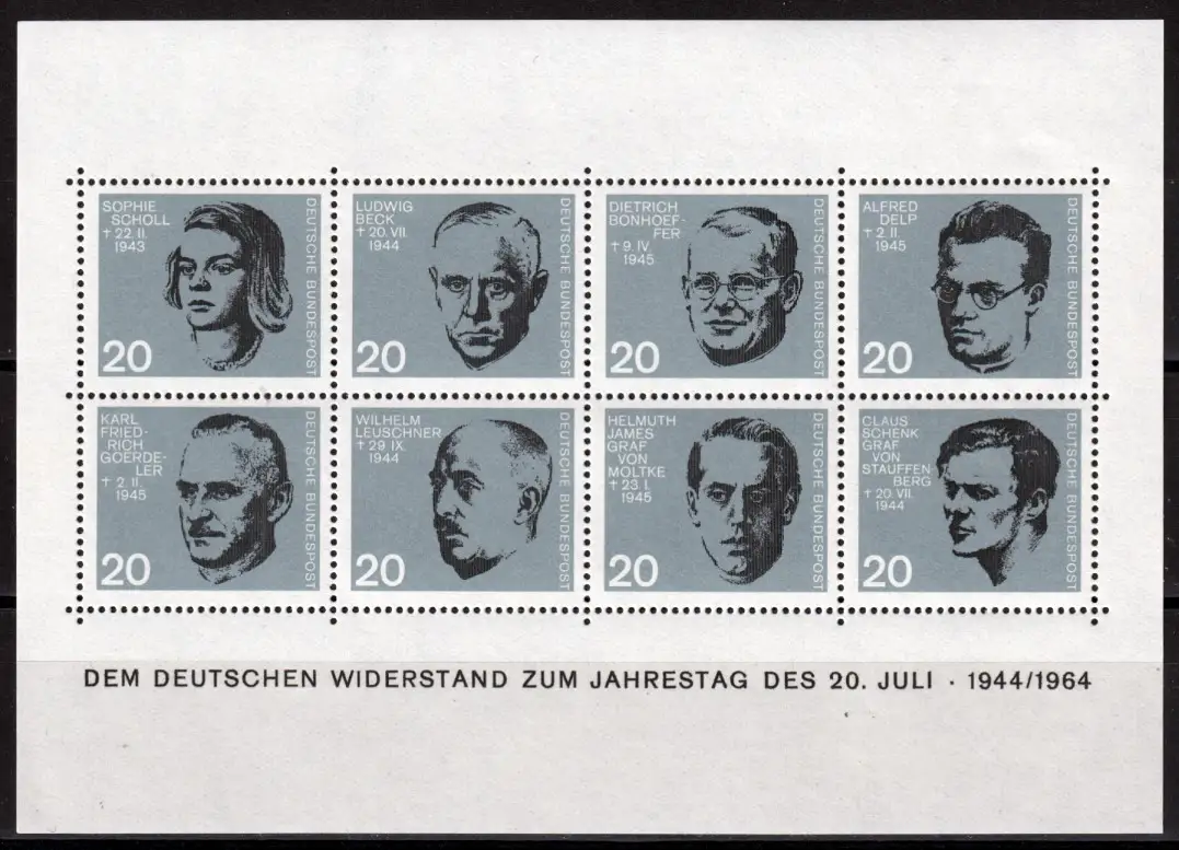 Ministerkarte Bund Block 3 Widerstand 20. Juli 1944, Typ IIIBl., postfrisch **