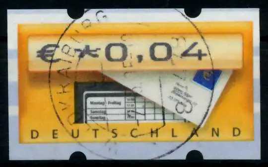 0,04 Euro Wert aus der ATM Ausgabe von 2002, mit Briefkastenlogo, Werteindruck 28mm lang