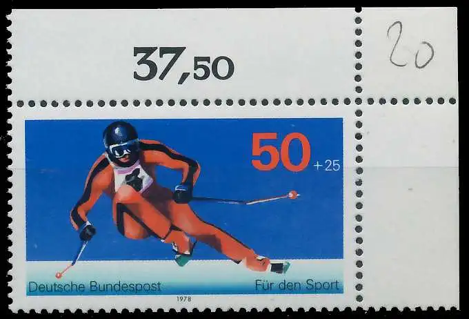 50 + 25 Pfg Wert aus der Ausgabe Sporthilfe 1978 - Abfahrtslauf
