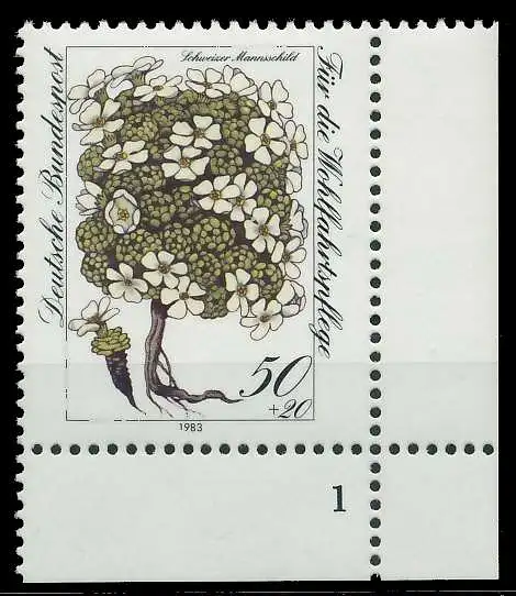 50 + 20 Pfg Wert aus der Ausgabe Wohlfahrt 1983 - Blumen - Alpenblumen