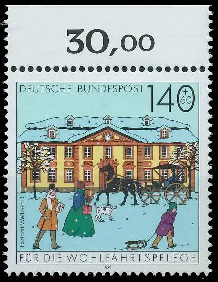 140 + 60 Pfg Wert aus der Ausgabe Wohlfahrt 1991 - Postämter