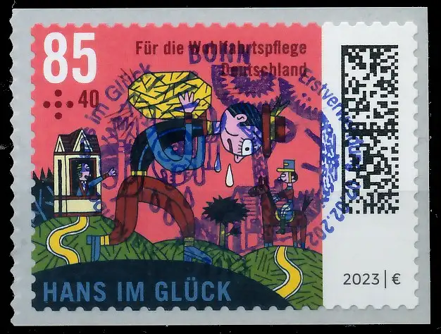 1,25 / 0,85 Euro aus der Ausgabe Wohlfahrt, selbstklebend auf Folienstreifen, Ersttagssonderstempel