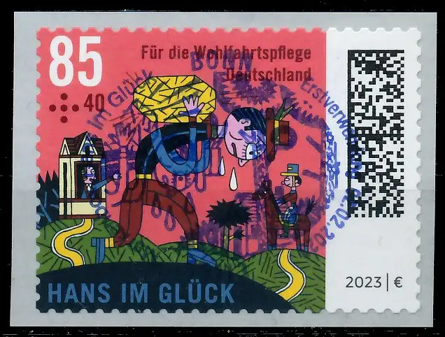 1,25 / 0,85 Euro aus der Ausgabe Wohlfahrt, selbstklebend auf Folienstreifen, Ersttagssonderstempel