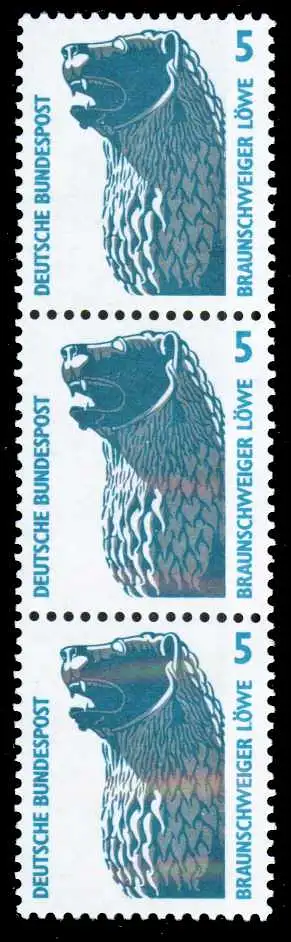 005 Pfg Wert aus der Ausgabe Sehenswürdigkeiten, 3er Streifen, eine Marke mit rückseitiger Nummer 200