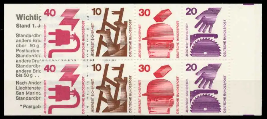 Kategorie 1: Deutschland, Bundesrepublik, Markenheftchen BRD, Unfallverhütung MH BRD