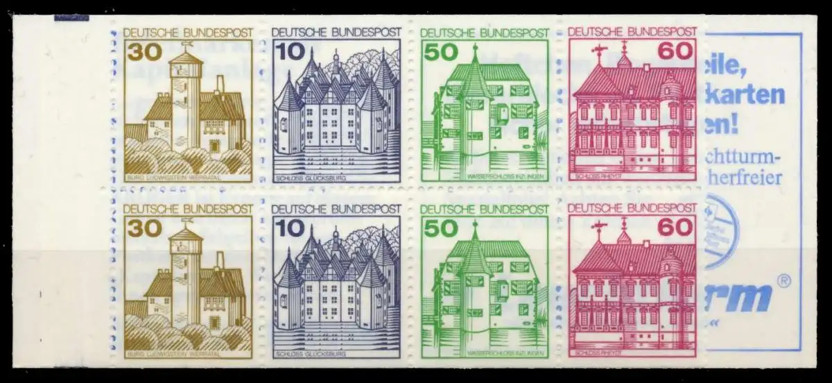 Markenheftchen Nr. 23c, Burgen und Schlösser 30 + 10 + 50 + 60