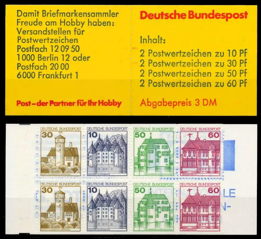 Markenheftchen Nr. 23e, Burgen und Schlösser 30 + 10 + 50 + 60