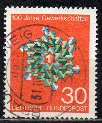 BRD, Mi-Nr. 570 gest., 100 Jahre Gewerkschaften in Deutschland