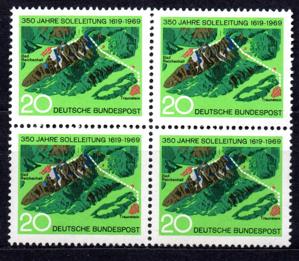 BRD, Mi-Nr. 602 **, 4´er-Block, 350 Jahre Soleleitung