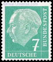Heuss Medallion, Freimarken Theodor Heuss (III); waagerechte Paare, Michel-Nummer 302-06; gestempelt