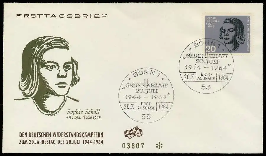 Einzelmarken aus Blockausgabe Widerstandskämpfer, jeweils einzeln auf FDC
