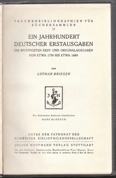 Stgt., Hoffmann (1925). 3 Bll., 206 S. OLn. - (Taschenbibliographien für Büchersammler, II)