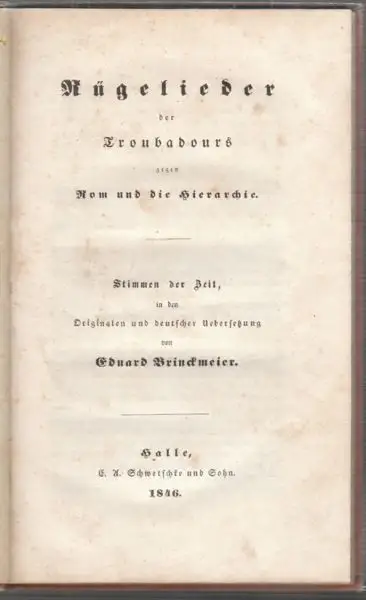 Halle, Schwetschke 1846. gr.-8°. VII, 77 S. Ln. d. Zt. Mit Rückengoldpräg. Einband gebleicht. EA