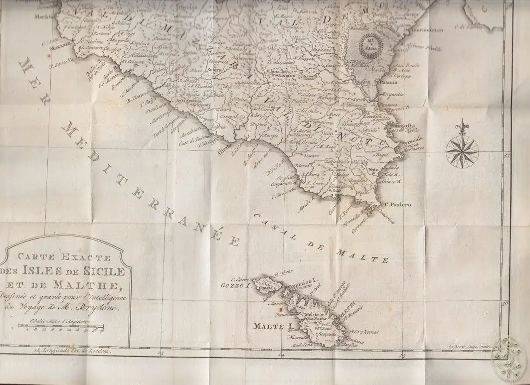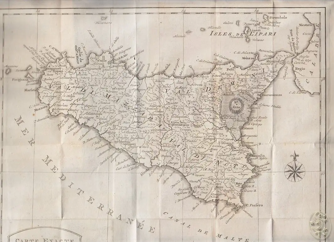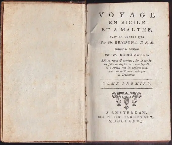 Bemerkungen: Cox I, 143; vgl. Mira I, 133; Graesse I, 560 - Erschienen ein Jahr nach der ersten franz. Ausgabe. Die EA erschien in London 1773 (vgl. Graesse). Enthält auch die in der Pariser Ausgabe vom Übersetzer ausgelassenen Teile. Die Karte zeigt die Liparischen Inseln, Sizilien und Malta. Die in briefstellerischer Form verfaßte Reisebeschreibung berichtet von Naturereignissen wie Ausbrüchen des Ätna, Erdbeben etc., Schilderungen v. Syrakus, Malta, Agrigente, Palermo u. den dort befindlichen Antiquitäten; vom Fest der Hl. Rosalia; vom Fischfang, Banditenwesen, landwirtschafltichen Erzeugnissen in Sizilien u.v.m.