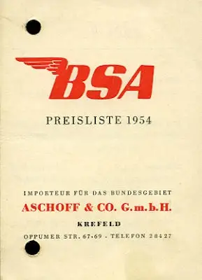 BSA Preisliste 1954
