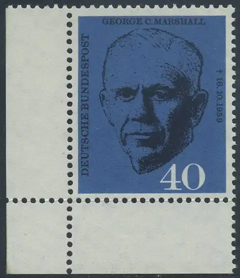 BUND 1960 Michel-Nummer 0344 postfrisch EINZELMARKE ECKRAND unten links