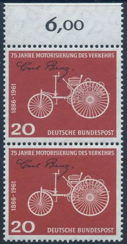 BUND 1961 Michel-Nummer 0364 postfrisch vert.PAAR RAND oben