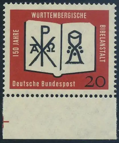 BUND 1962 Michel-Nummer 0382 postfrisch EINZELMARKE RAND unten