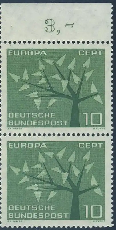 BUND 1962 Michel-Nummer 0383 postfrisch vert.PAAR RAND oben (b)