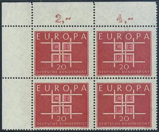 BUND 1963 Michel-Nummer 0407 postfrisch BLOCK ECKRAND oben links